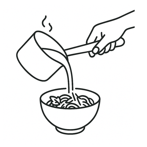 Setelah teraduk merata, tuang air + bumbu bawang putihnya ke dalam mangkok!